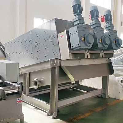 Utilizan a esta prensa de tornillo para el barro que deseca, usando el acero inoxidable como el método de la filtración. El barro es espesado y desecado progresivamente dentro del cuerpo del tornillo con el movimiento de los anillos móviles, y la terminación por la placa fija. La dureza de la capa del carburo de tungsteno alcanza 1300HV y su rotación lenta elimina el efecto de la fricción tan para asegurar la vida útil larga de la máquina. El líquido filtrado es escurrió los huecos entre fijo y los anillos móviles y la torta desecada se descarga en la placa de extremo, alcanzando un contenido sólido mínimo del 20%.